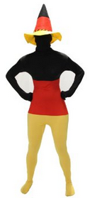 Der Foxxeo Bodysuit in Größe M bis L kostet nur 9,99 Euro + 2,49 Euro Versandkosten. Der Morphsuit ist in den deutschen Farben, es erkennt also jeder sofort, dass du wegen der WM (oder später aus einem anderen Grund) dieses etwas ungewöhnliche Outfit gewählt hast.