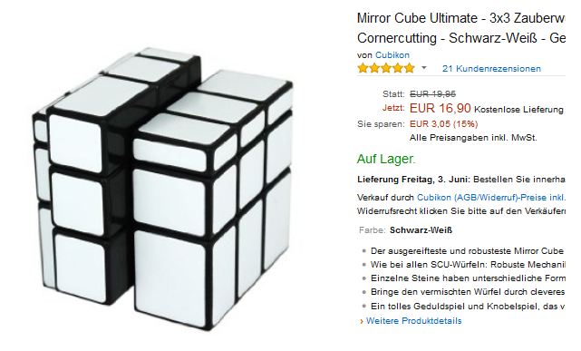 Nachdem wir schon einige „Zauberwürfel“-Varianten gibt es mit dem Mirror Cube noch ein spezielles Highlight, das bei Amazon reduziert erhältlich ist.